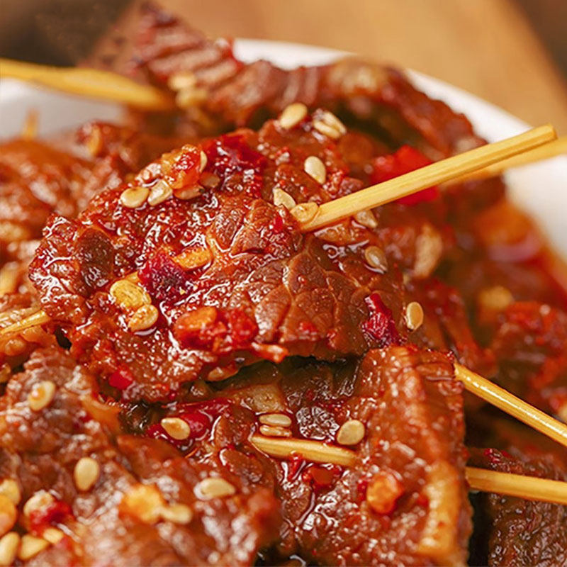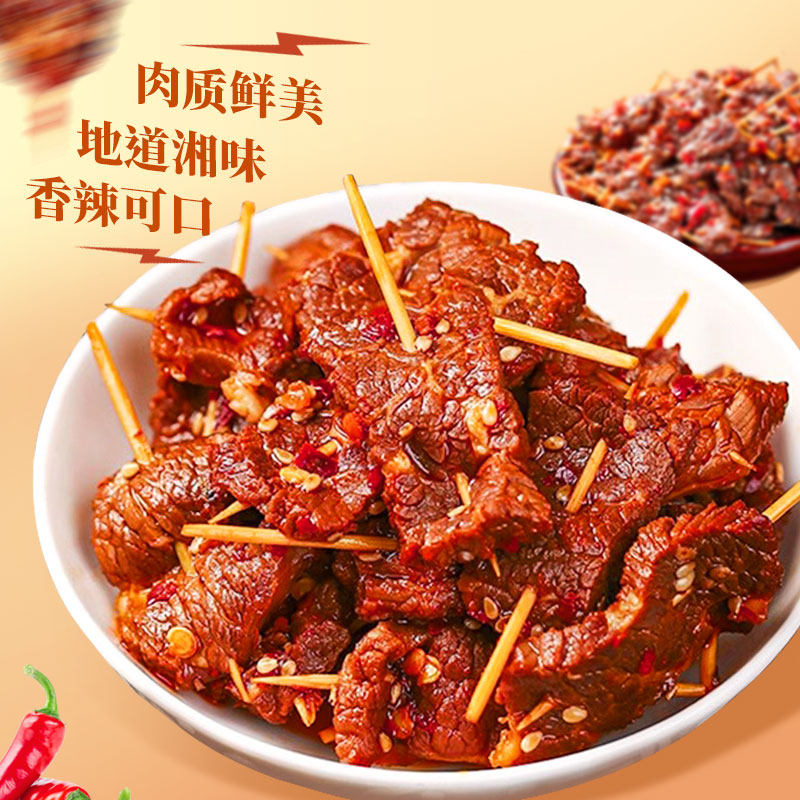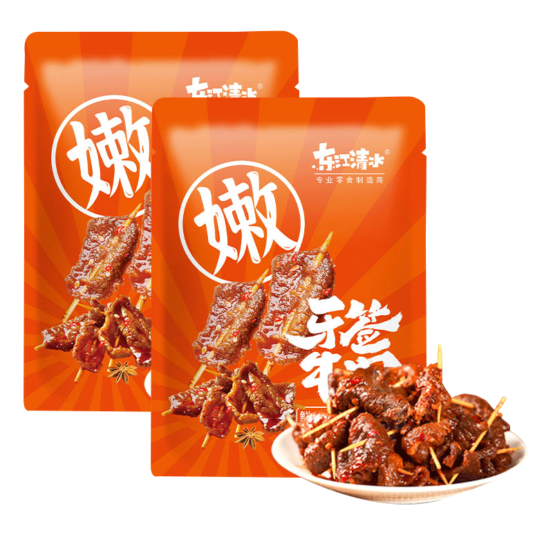 天猫东江清水牙签牛肉串96g香辣味酱牛肉干休闲小零食品网红小吃卤味
