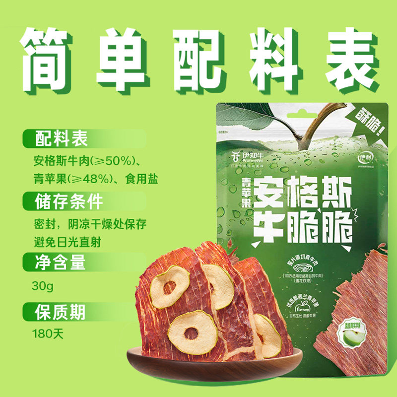 天猫伊知牛牛肉脆片解馋休闲零食风干青苹果安格斯牛肉干牛脆脆即食