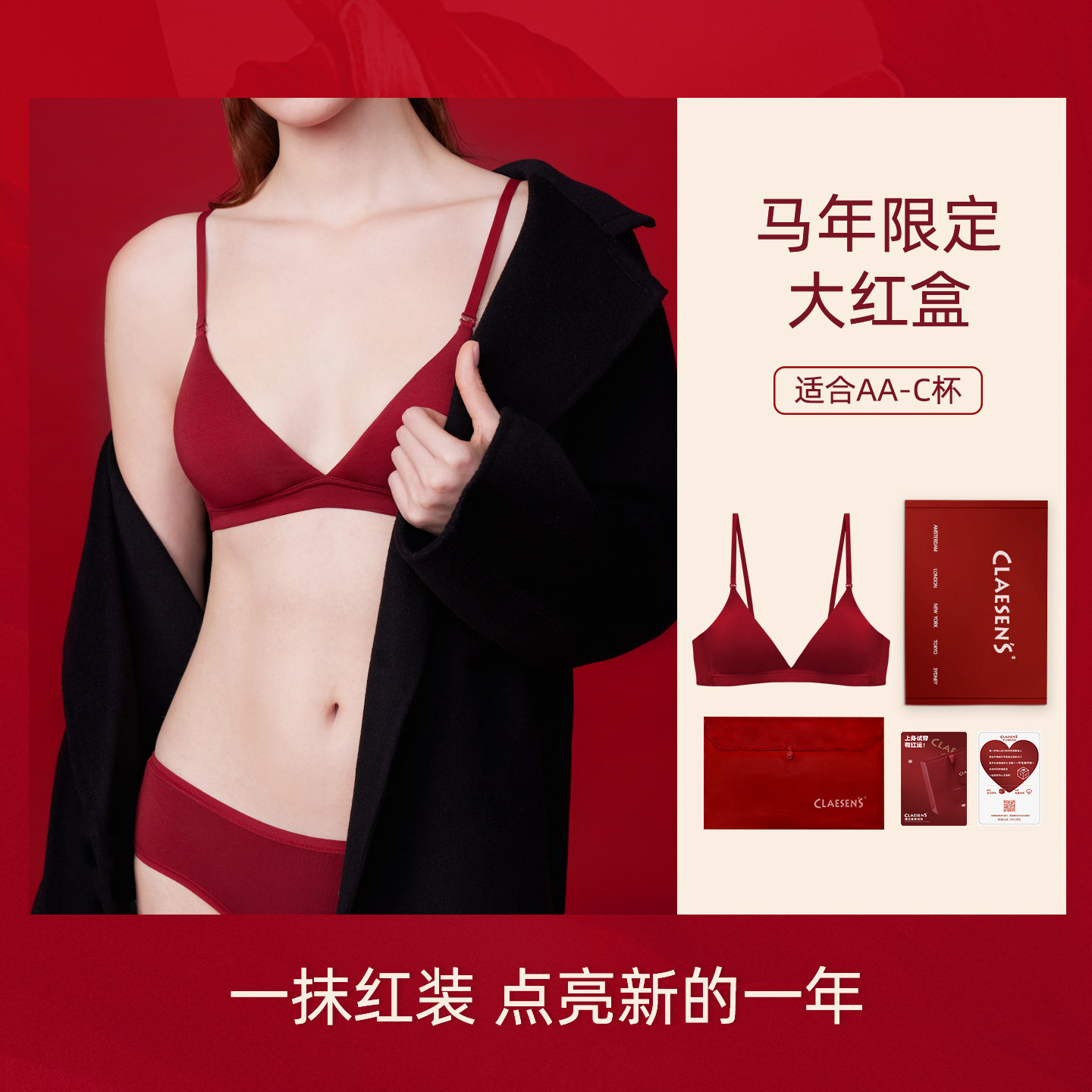 天猫红色内衣女无钢圈无痕小胸性感法式三角杯送礼结婚本命年马年文胸