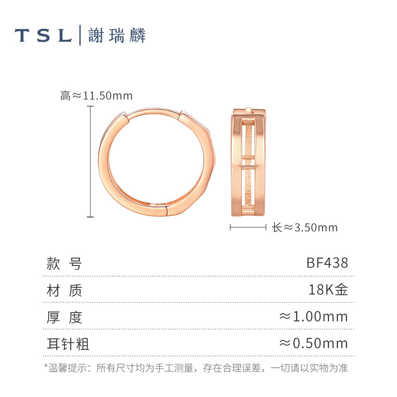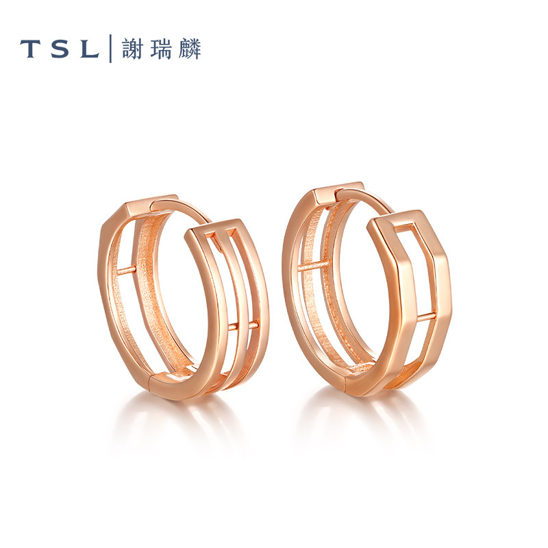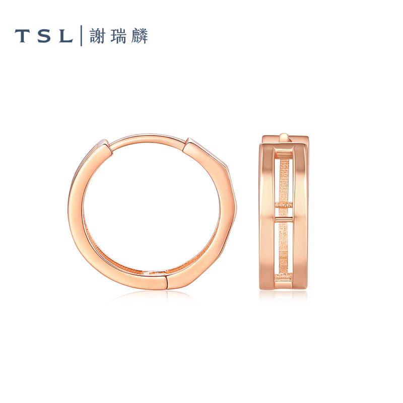 天猫TSL谢瑞麟18K金耳饰素金耳圈几何线条玫瑰金耳饰女士新品BF438
