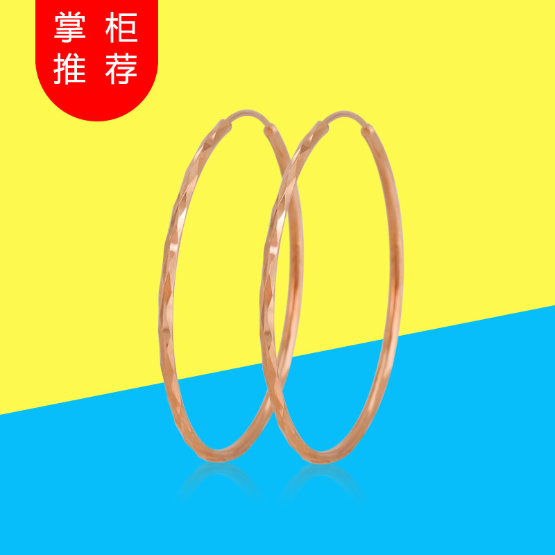 淘宝弥高珠宝18K玫瑰金菱形亮面花纹耳圈热卖Au750耳饰黄金白金品牌