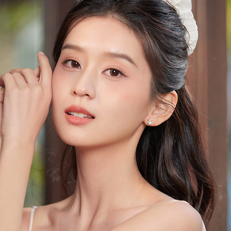 欧诗漫无核淡水珍珠耳钉S925银耳钉耳环耳饰养耳洞新年礼物 莹巧