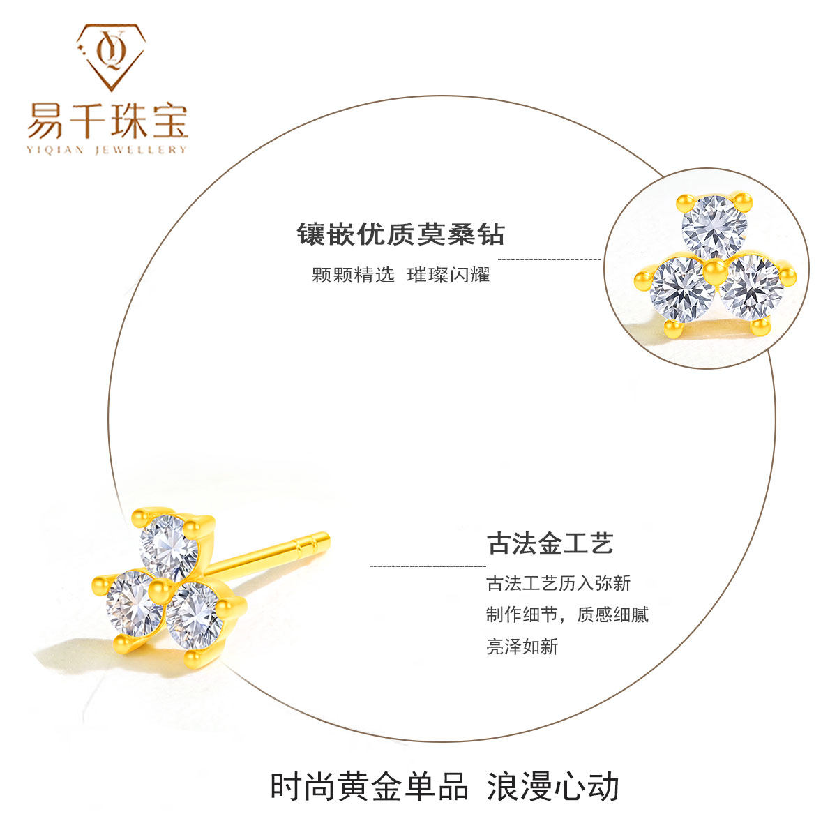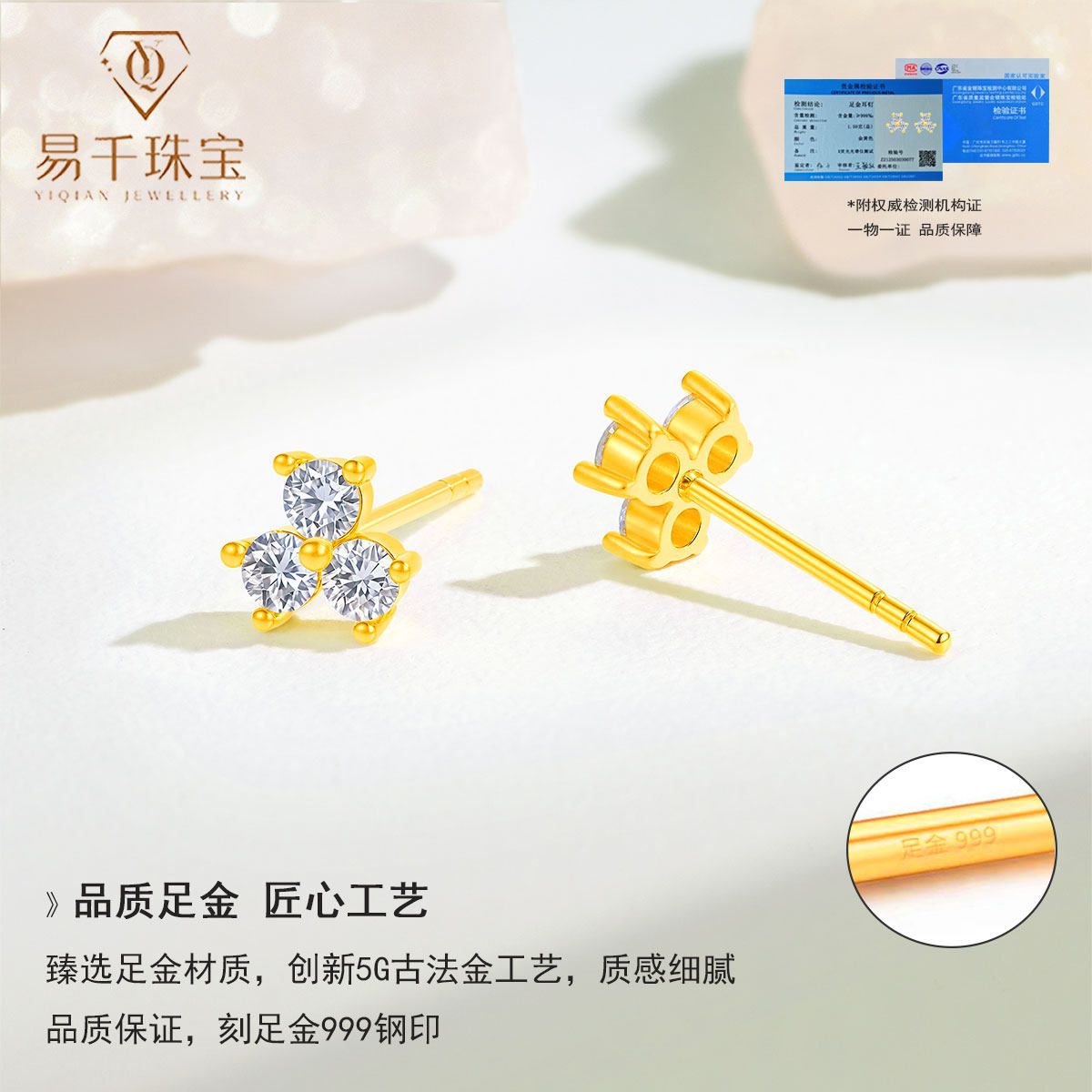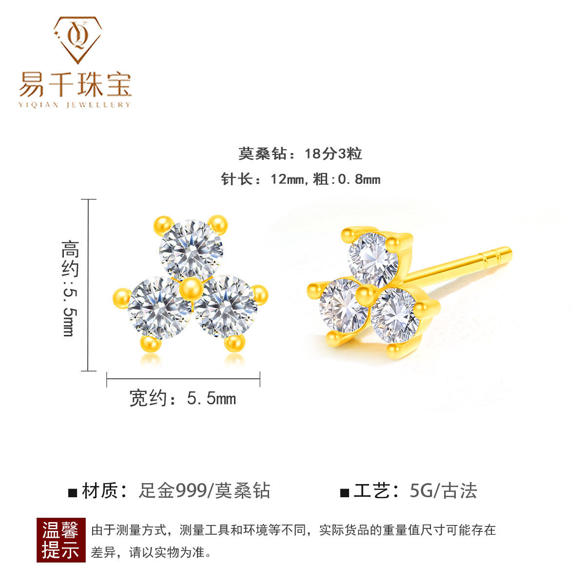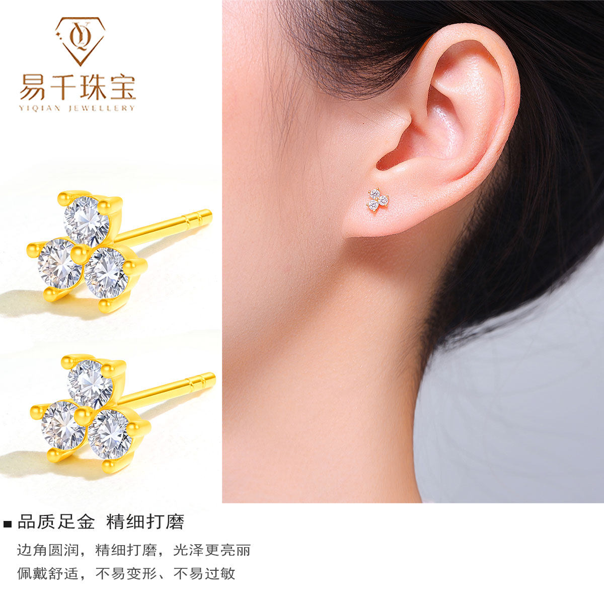 淘宝黄金耳钉5G工艺三叶草999足金耳饰精致莫桑石纯金养耳洞耳针送女