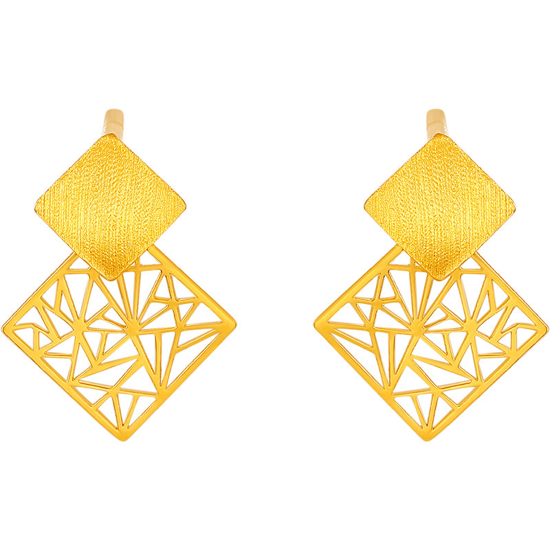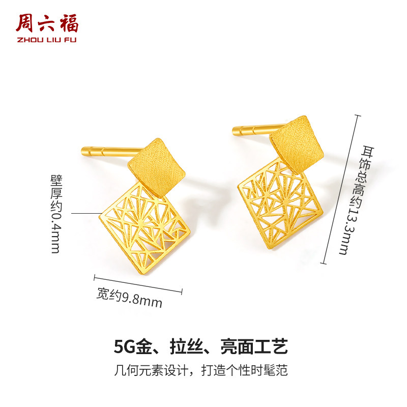 淘宝周六福黄金耳饰女足金计价职场5G无极金窗花耳钉送女友圣诞礼物