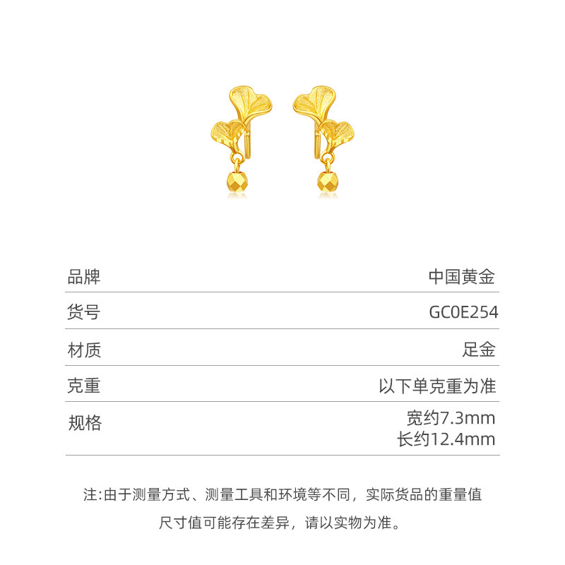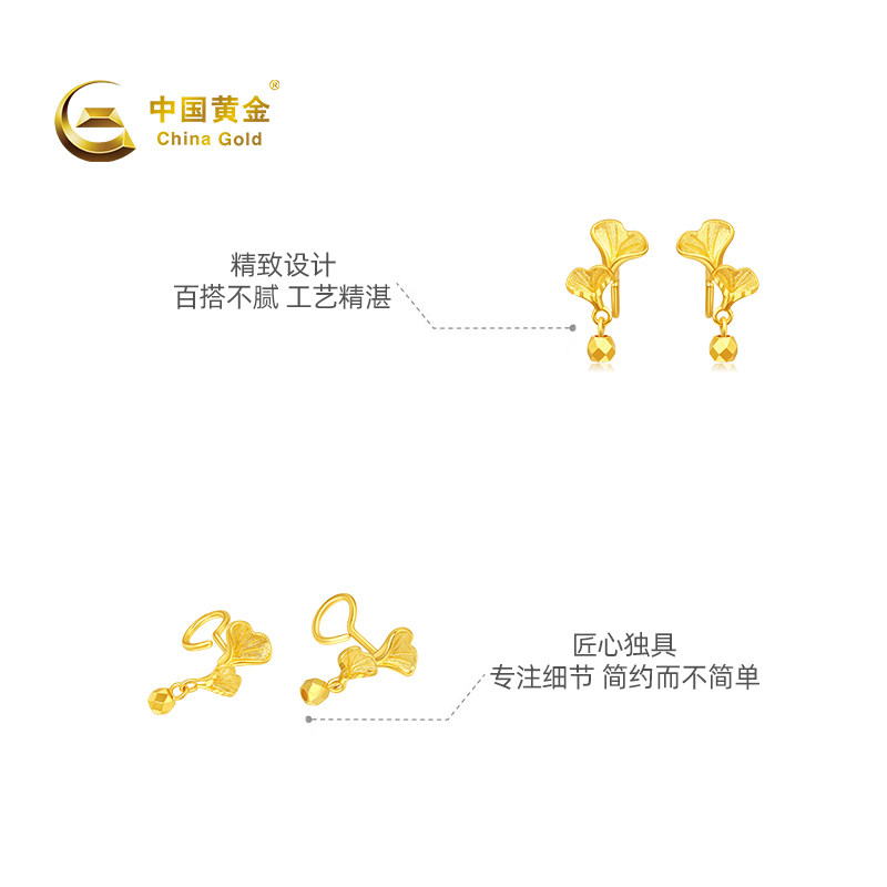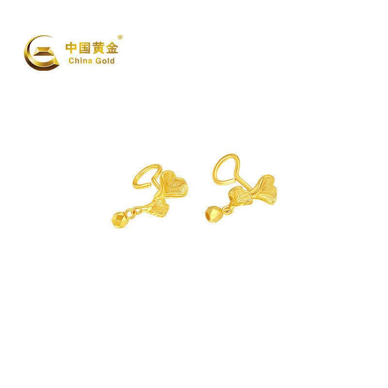 天猫【中国黄金官方店】足金5G银杏叶耳饰时尚简约气质首饰新品百搭
