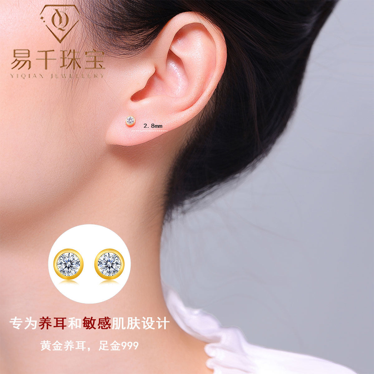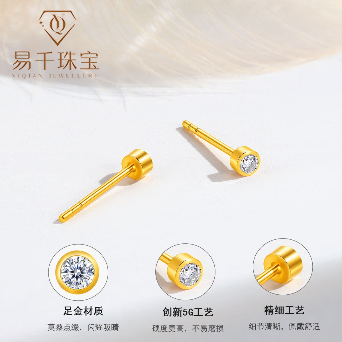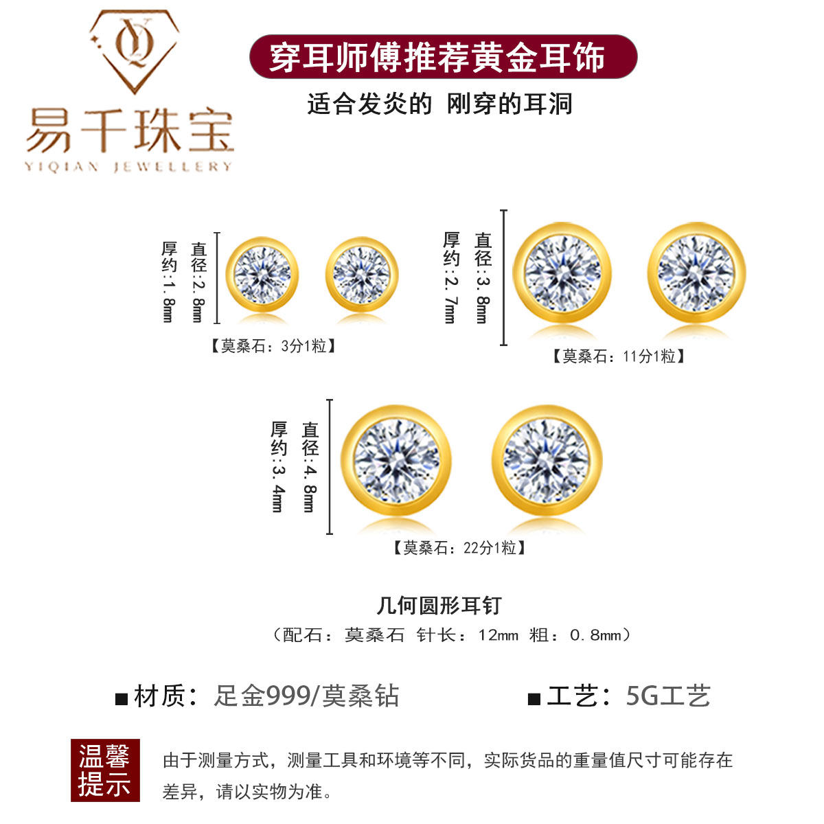 淘宝黄金耳钉999足金泡泡小耳环养耳洞耳饰时尚古法金黄金耳针女圆形