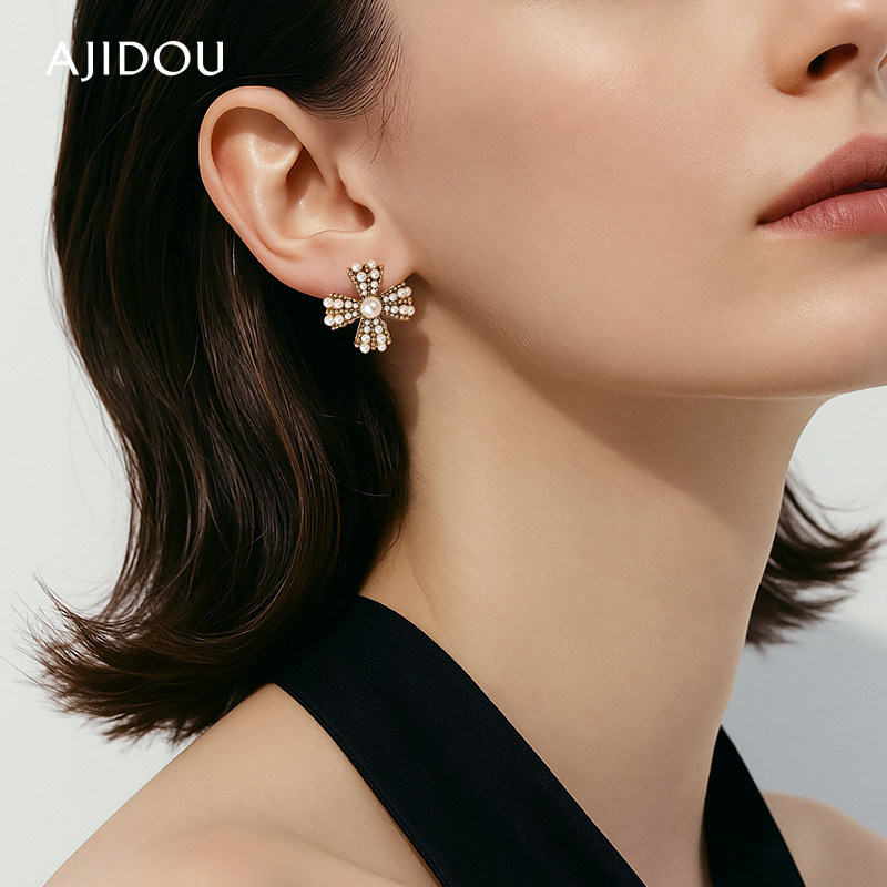 天猫AJIDOU阿吉豆耳钉女小香风珍珠耳钉花朵耳环轻奢配饰小众爆款耳饰