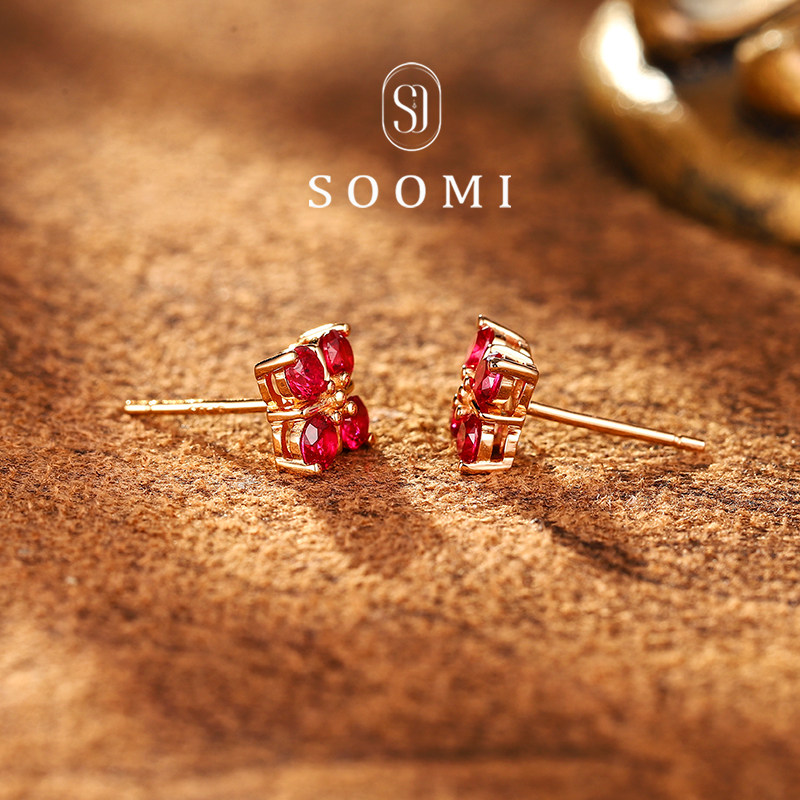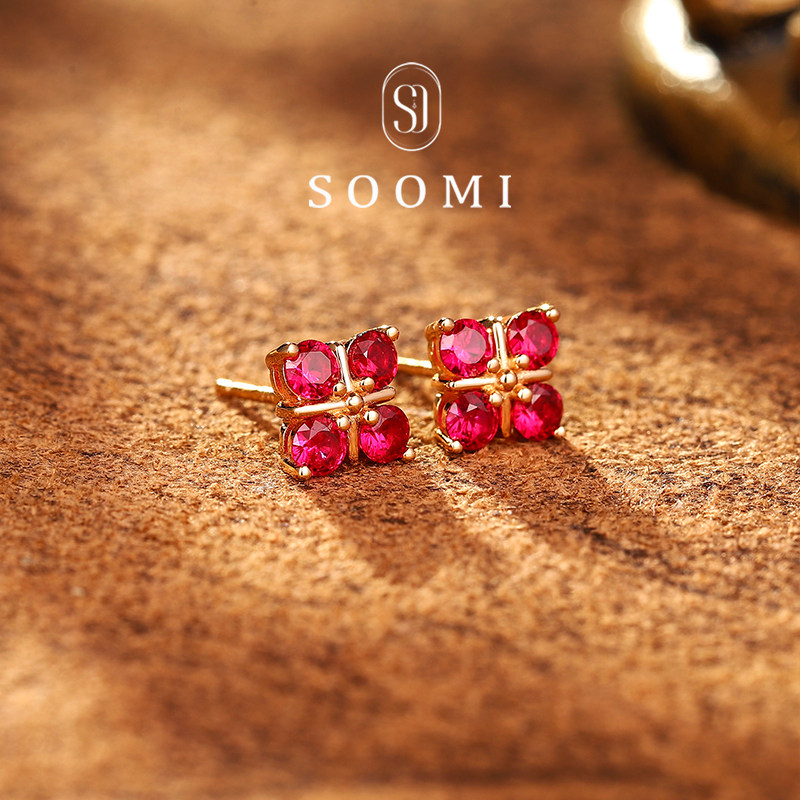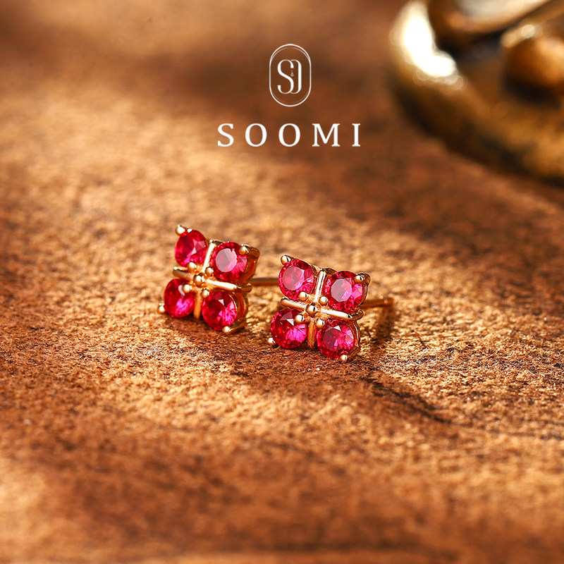 淘宝【SOOMI 幸叶】红宝石耳钉80分培育彩宝四叶草耳饰通勤宝石耳坠