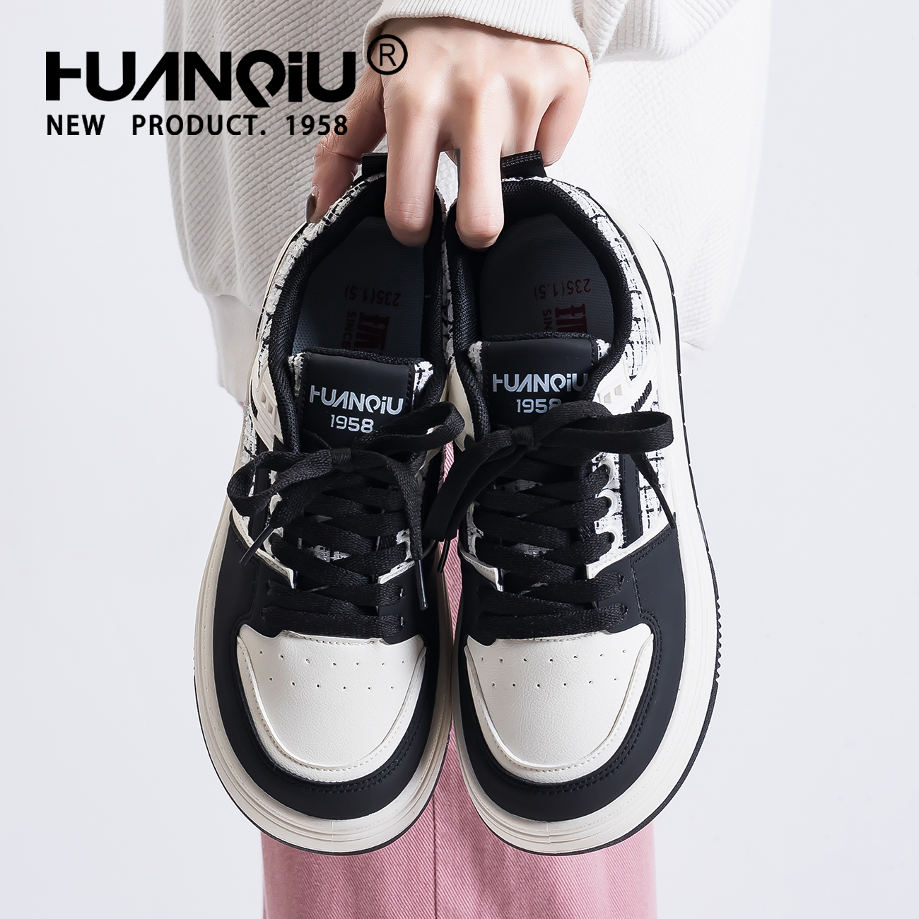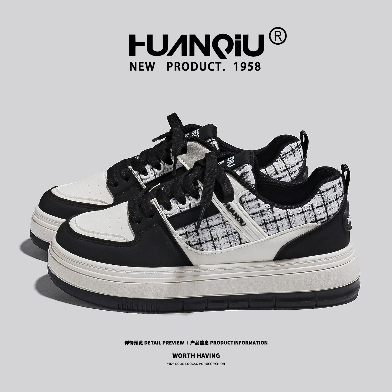 天猫环球小香风厚底板鞋女款2025秋冬新款百搭小众休闲运动黑白板鞋子