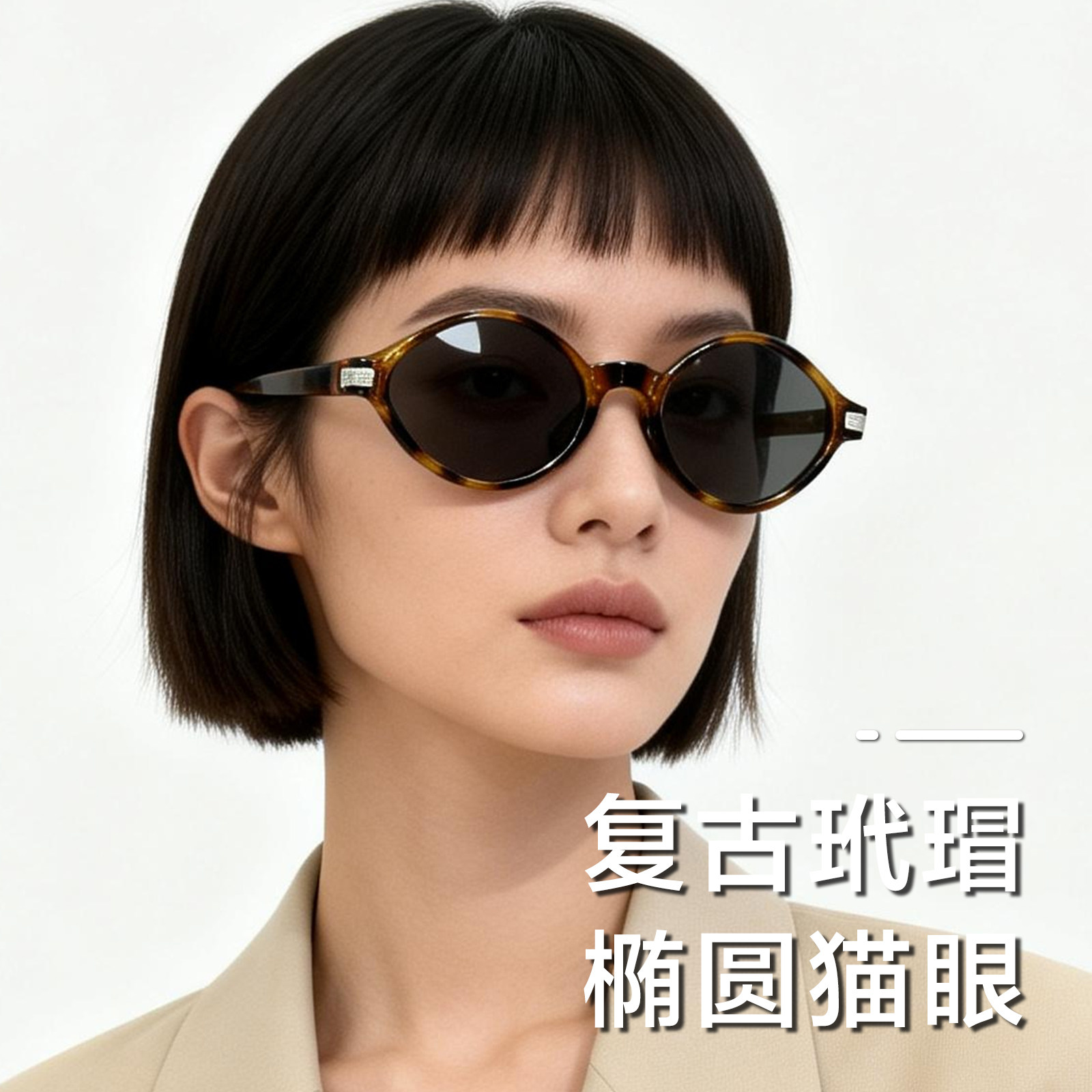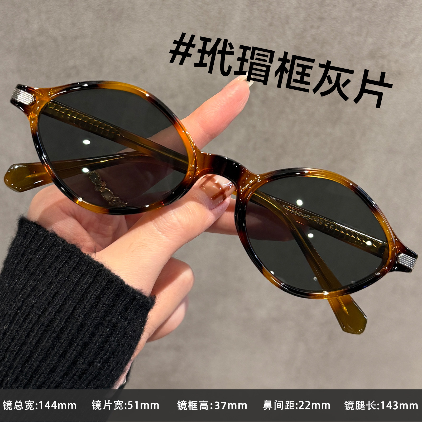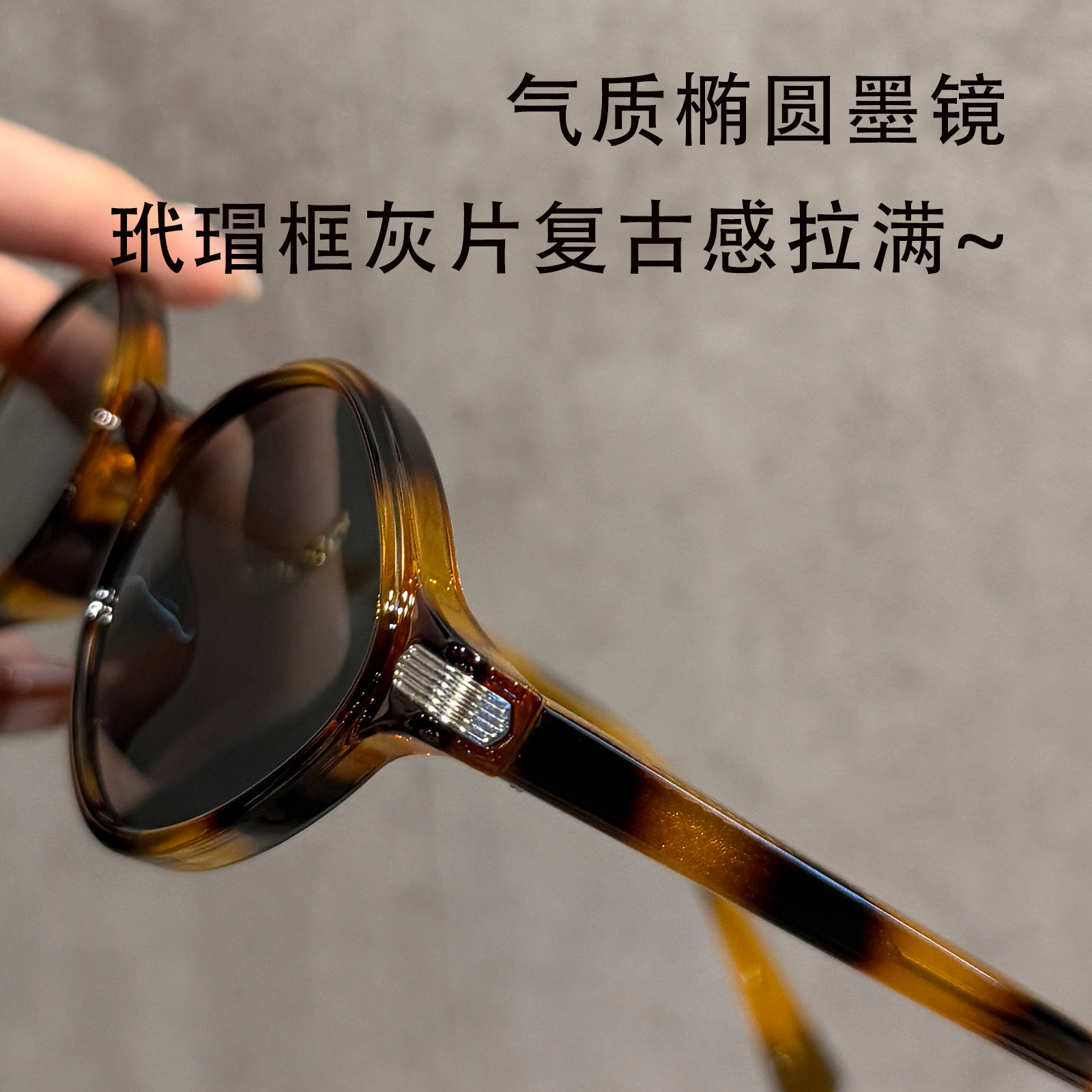 复古韩系玳瑁墨镜女高级感防晒紫外线开车椭圆形太阳眼镜可配度数