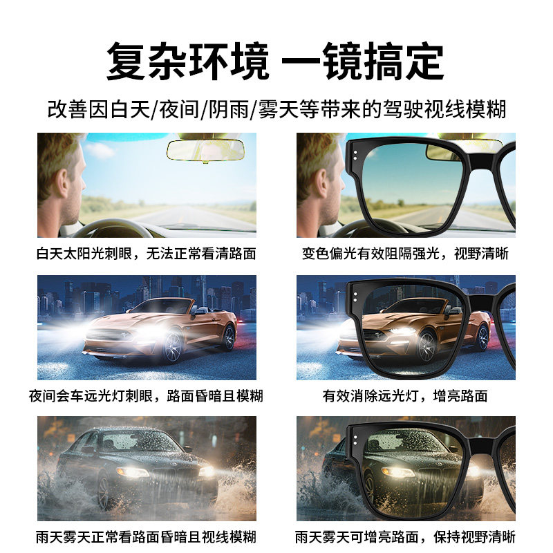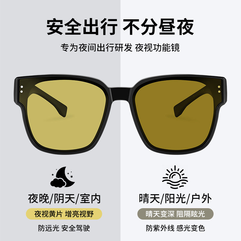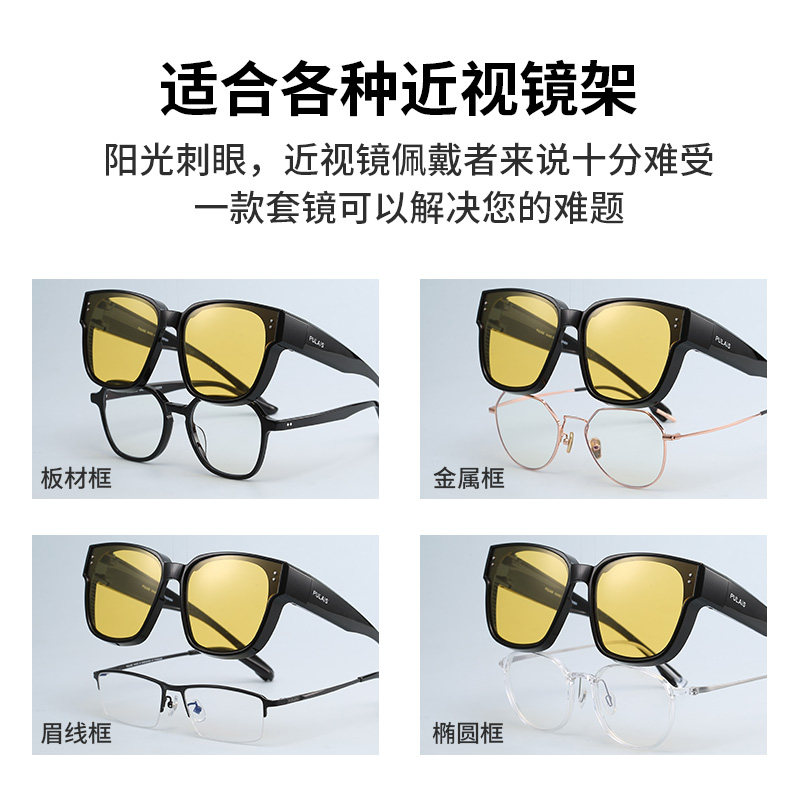 天猫普莱斯夜视近视套镜夜间开车开车驾驶日夜两用墨镜变色偏光太阳镜
