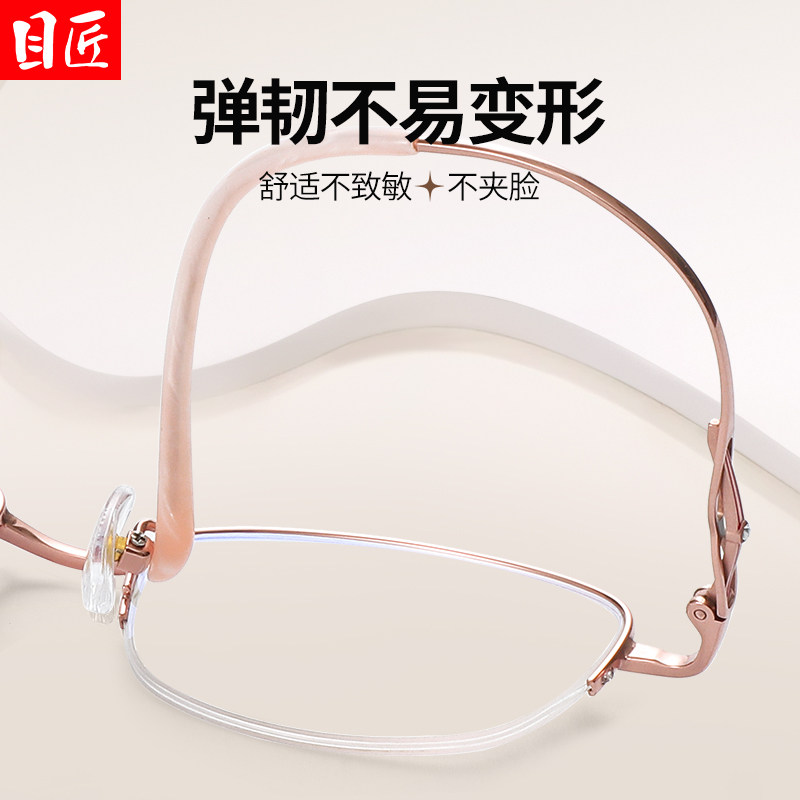 这款女款自动感光变色近视眼镜,集时尚与功能于一体。采用高品质纯钛材质打造半框设计,轻盈舒适,佩戴无压感。镜片具备智能感光变色功能,室内外自动调节深浅,强光下秒变墨镜,有效防紫外线;室内透明清晰,日常使用更便捷。同时搭载防蓝光技术,有效过滤电子屏幕有害蓝光,保护视力健康。支持个性化配镜,可精准定制近视、远视及散光度数,满足多种视力需求。无论是通勤、驾车还是户外休闲,都能提供清晰视觉与全面防护,是现代女性兼顾美观与实用的理想选择。
