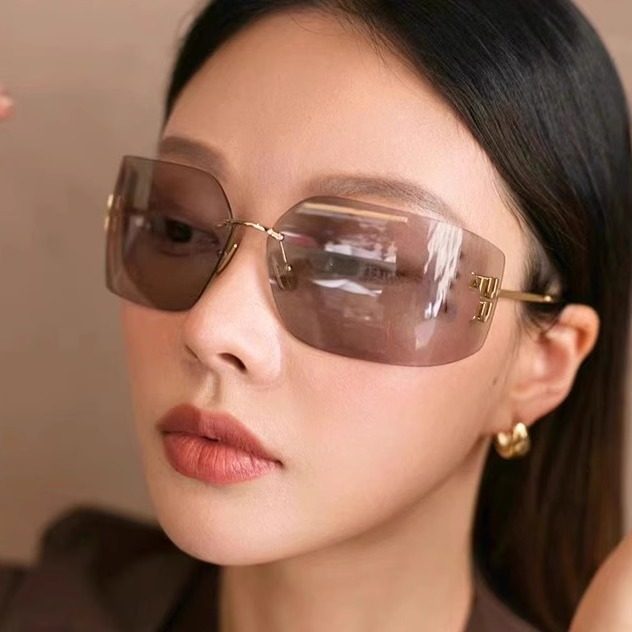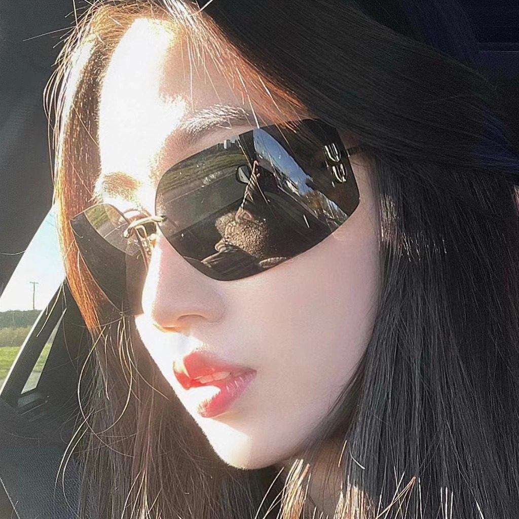 复古Y2K无框墨镜女高级感方圆脸显瘦防紫外线无边框太阳眼镜潮酷