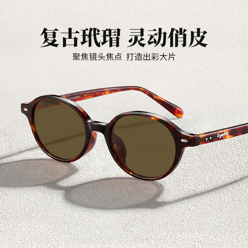 天复古韩系玳瑁墨镜女高级感防晒紫外线开车椭圆形太阳眼镜可配度数