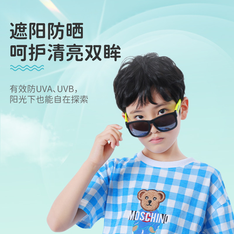 天猫眼镜帮方形儿童太阳镜男孩骑行墨镜潮酷时尚户外遮阳防晒防紫外线