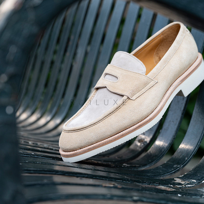 OctTenth手缝沿条工艺男士休闲乐福鞋,采用优质牛翻毛皮材质,质感粗犷且富有层次感,兼具透气性与耐用性。鞋款延续经典便士乐福设计,简约大方,搭配金属饰扣与标志性便士扣带,彰显低调雅致的绅士风范。核心工艺采用传统手缝沿条结构,将鞋面、内底与外底牢固缝合,不仅增强鞋身整体性,更提升舒适度和耐穿性,久穿不易变形。内里选用柔软皮质,贴合脚型,行走轻盈自在。无论是搭配西裤还是休闲裤,都能轻松驾驭多种场合,是追求品质与格调男士的理想之选。