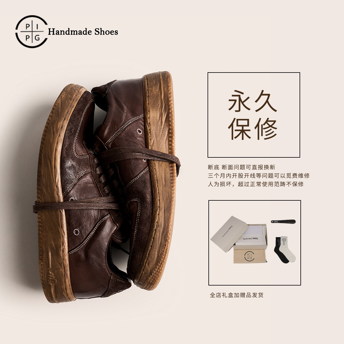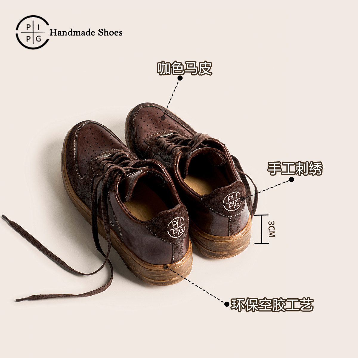 淘宝PIPG男鞋小众原创设计手工真皮皮鞋复古运动休闲板鞋做旧擦色马皮