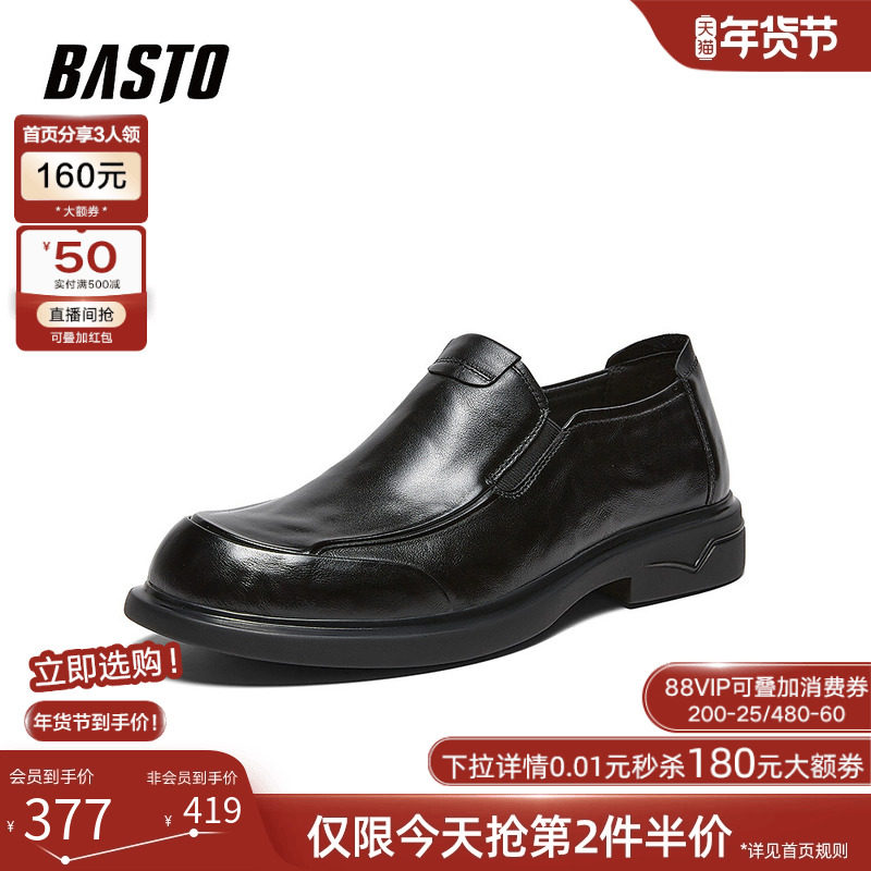 天猫百思图26春商场新款一脚蹬豆豆乐福鞋软底爸爸鞋男士皮鞋8FH02AM6