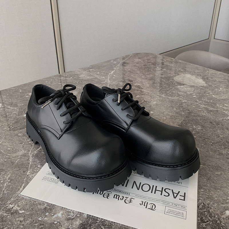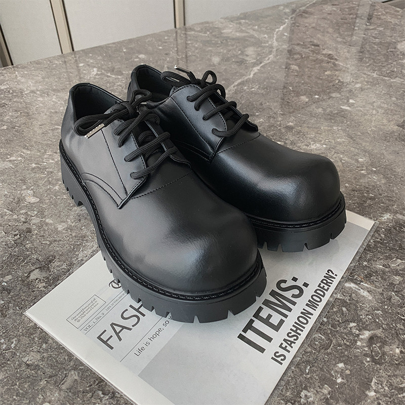 淘宝Holocene绑带大头皮鞋男款增高休闲vibe风格潮流时尚百搭鞋子男