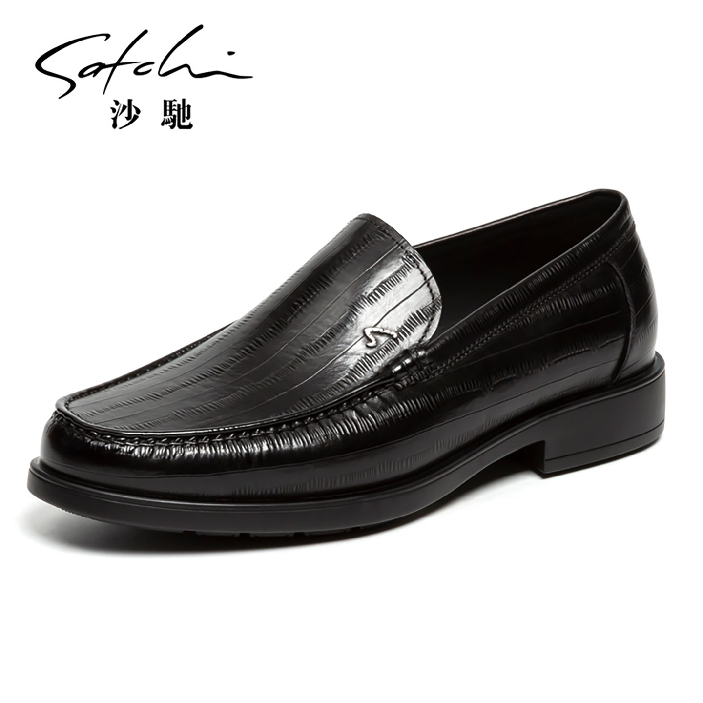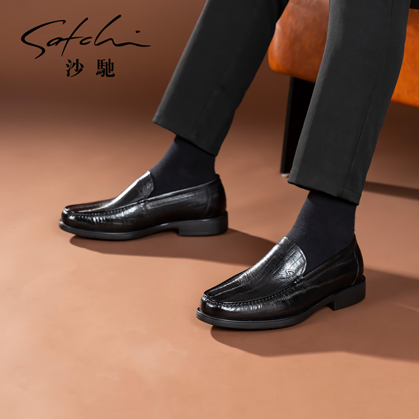 天猫【1299元3件】沙驰男鞋商务休闲皮鞋真皮英伦一脚蹬软底乐福鞋