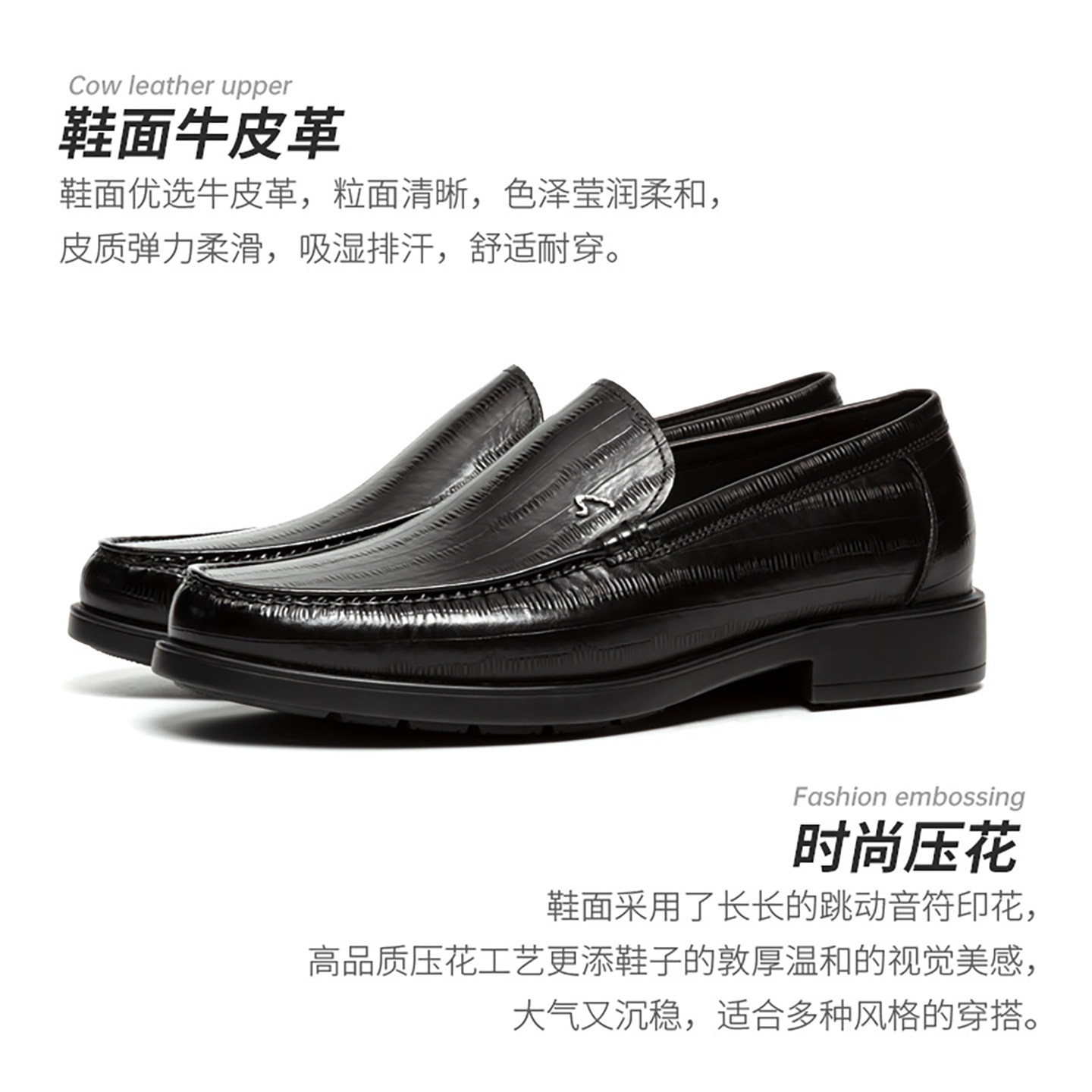 老人头男鞋冬季男士商务正装套脚内增高皮鞋男真皮加绒保暖休闲鞋
