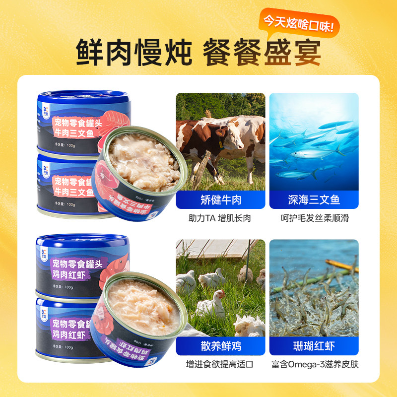 天猫豆柴三文鱼牛肉猫罐头成幼猫湿粮猫咪泰迪狗狗零食100g