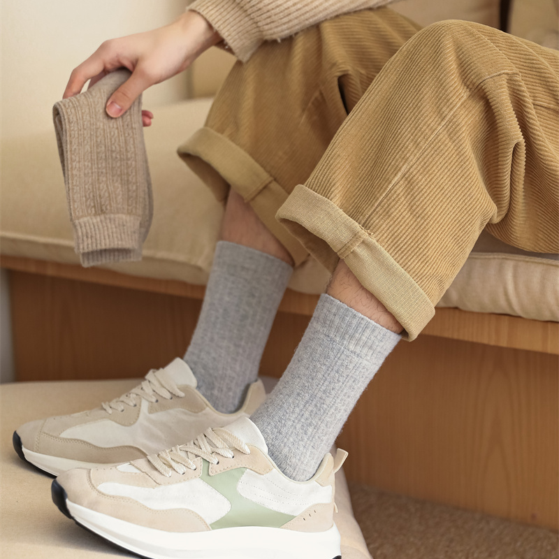 这款男士暖云绒袜子专为秋冬严寒设计,采用加厚毛圈内里,搭配柔软亲肤的云绒面料,锁温保暖效果出众。中筒及长筒版型贴合腿部,有效防风御寒,适合商务通勤或日常穿搭。经典麻花纹理设计,简约大方不失时尚感,彰显男士沉稳气质。高弹罗口不易滑落,久穿不勒脚,舒适耐穿。无论是搭配正装皮鞋还是休闲靴款,都能提供全天候温暖呵护。优质工艺确保多次洗涤仍保持蓬松与弹性,是冬季足部保暖的理想之选,兼顾实用性与品味,让双脚在寒冬中尽享温暖与舒适。
