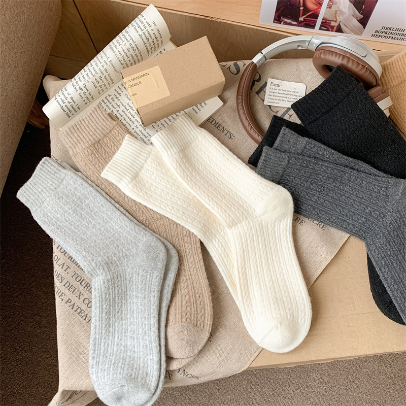 天猫男士暖云绒袜子秋冬加厚毛圈保暖中筒袜男袜商务麻花冬天长筒袜