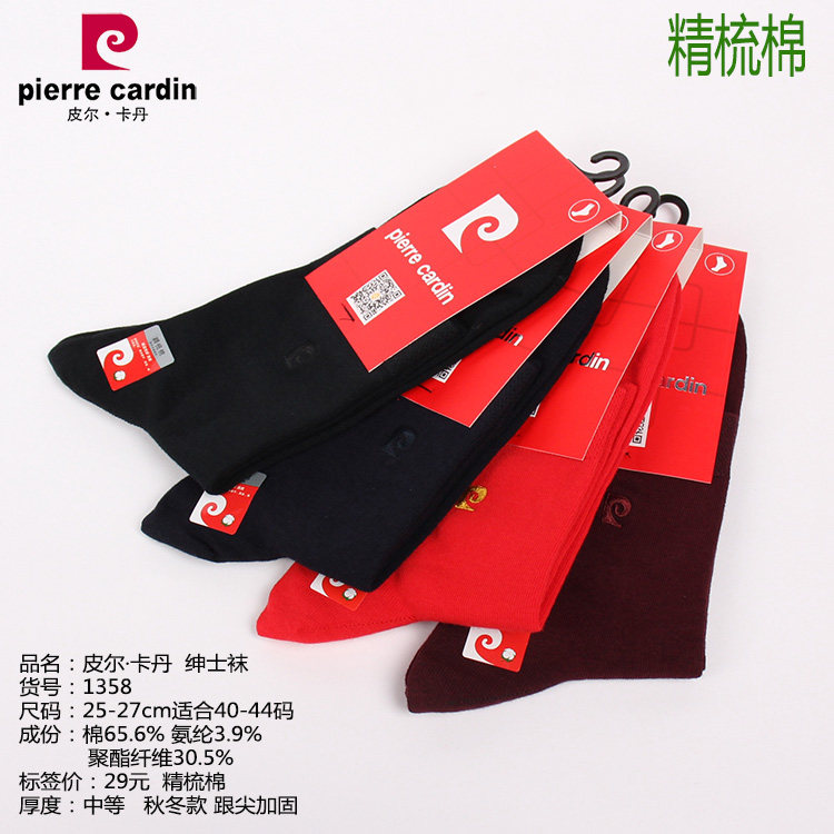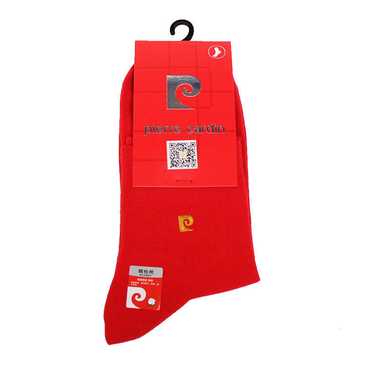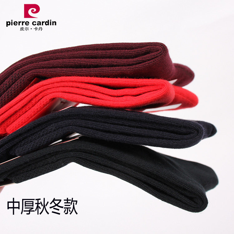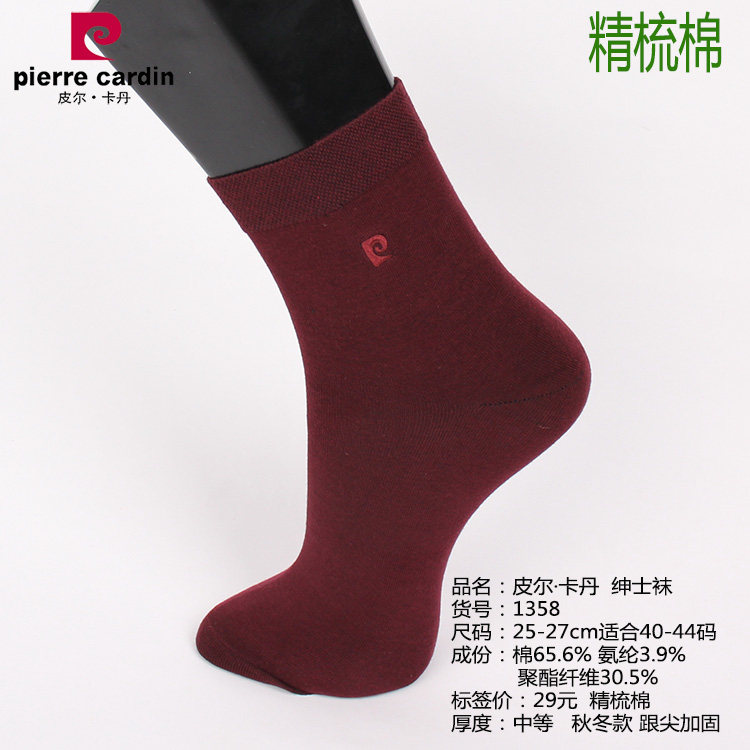 淘宝满3双包邮皮尔卡丹男袜1358秋冬厚精梳棉中筒纯色商务袜绣标酒红