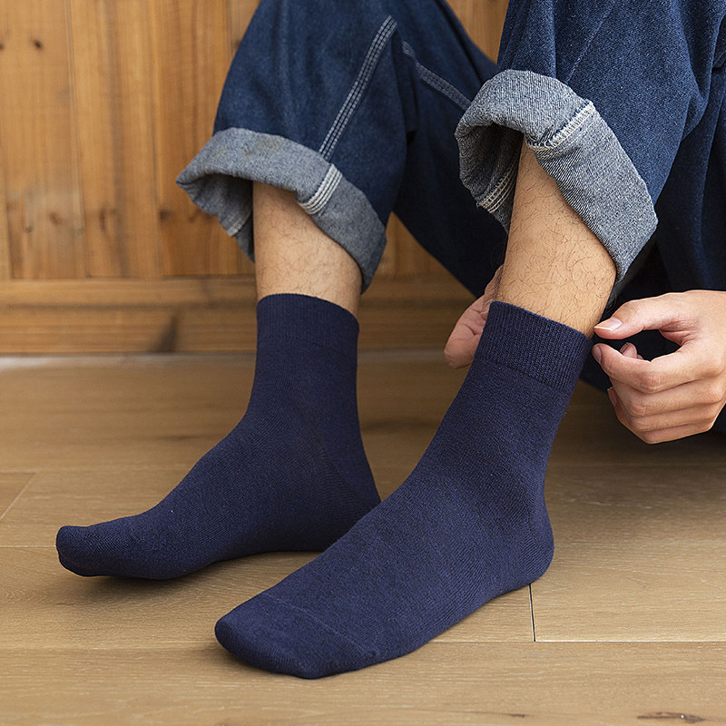 淘宝袜子男纯棉秋冬季男士中筒袜日系纯色短筒袜黑色商务男袜防臭吸汗