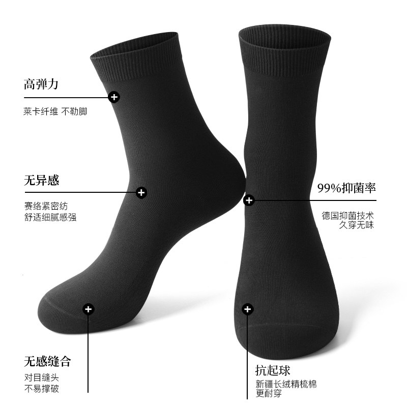 袜子男士纯棉黑色四季中筒袜全棉防臭运动短袜商务男袜不臭脚棉袜