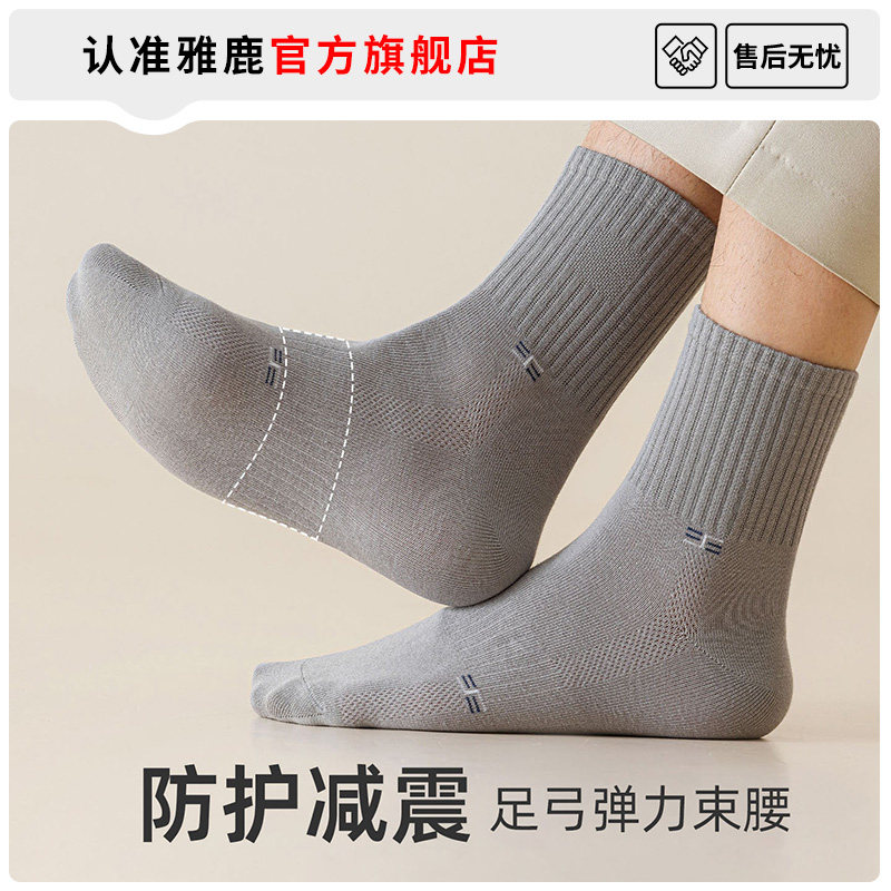 天猫雅鹿袜子男款纯棉防臭吸汗男士中筒7a抗菌秋冬天商务男袜2026新款