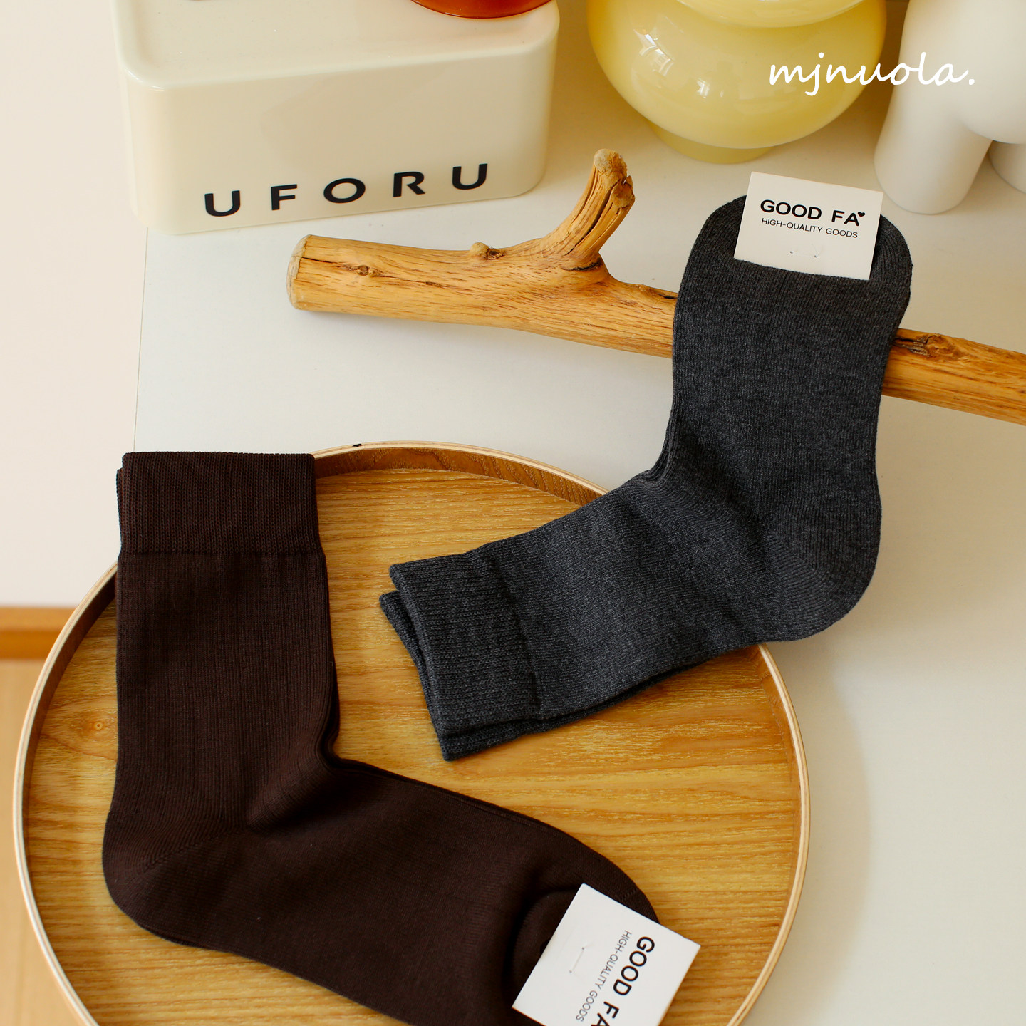 Tabio罗纹袜子男春夏透气吸湿日系百搭中筒袜纯色黑白男袜商务袜