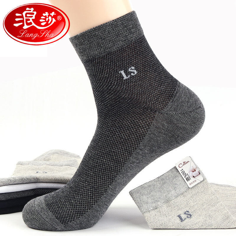 淘宝浪莎商务休闲夏季男士纯棉网眼袜简约透气吸汗全棉春秋中筒男袜子