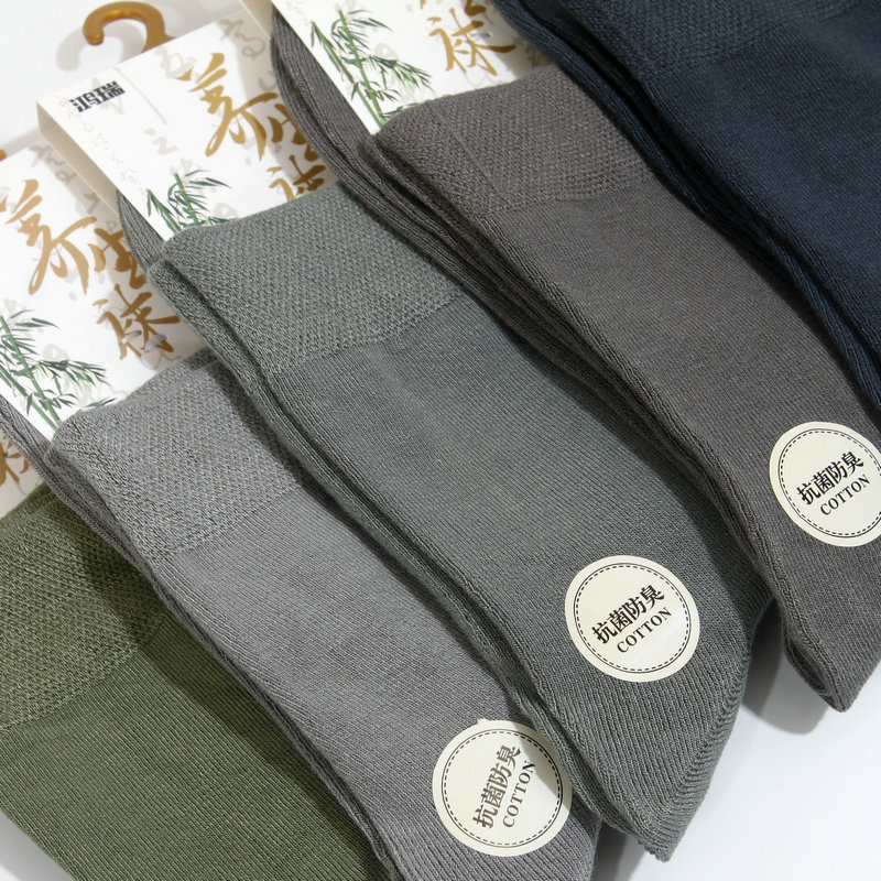 淘透气高筒亚麻抑菌男士袜子 男士商务中筒男袜舒适吸汗透气