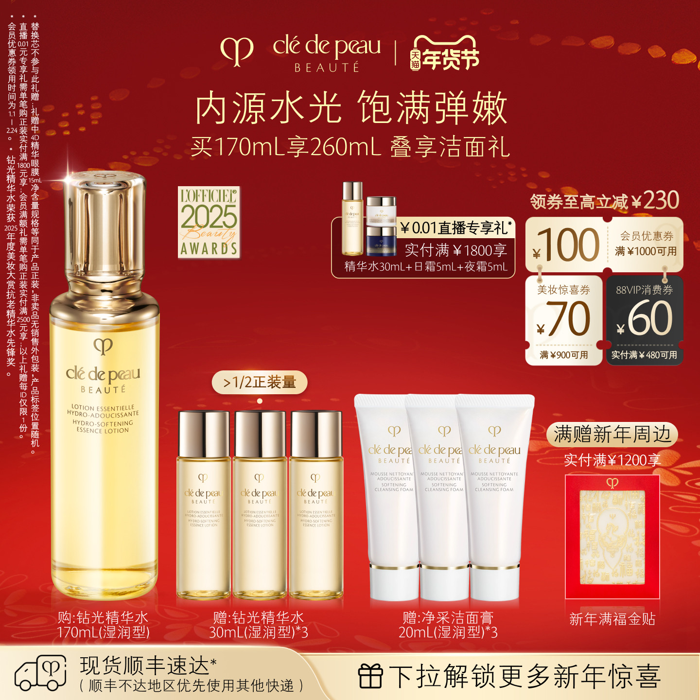 天猫【新年礼物】肌肤之钥CPB钻光精华水爽肤水滋养紧致保湿滋润抗老