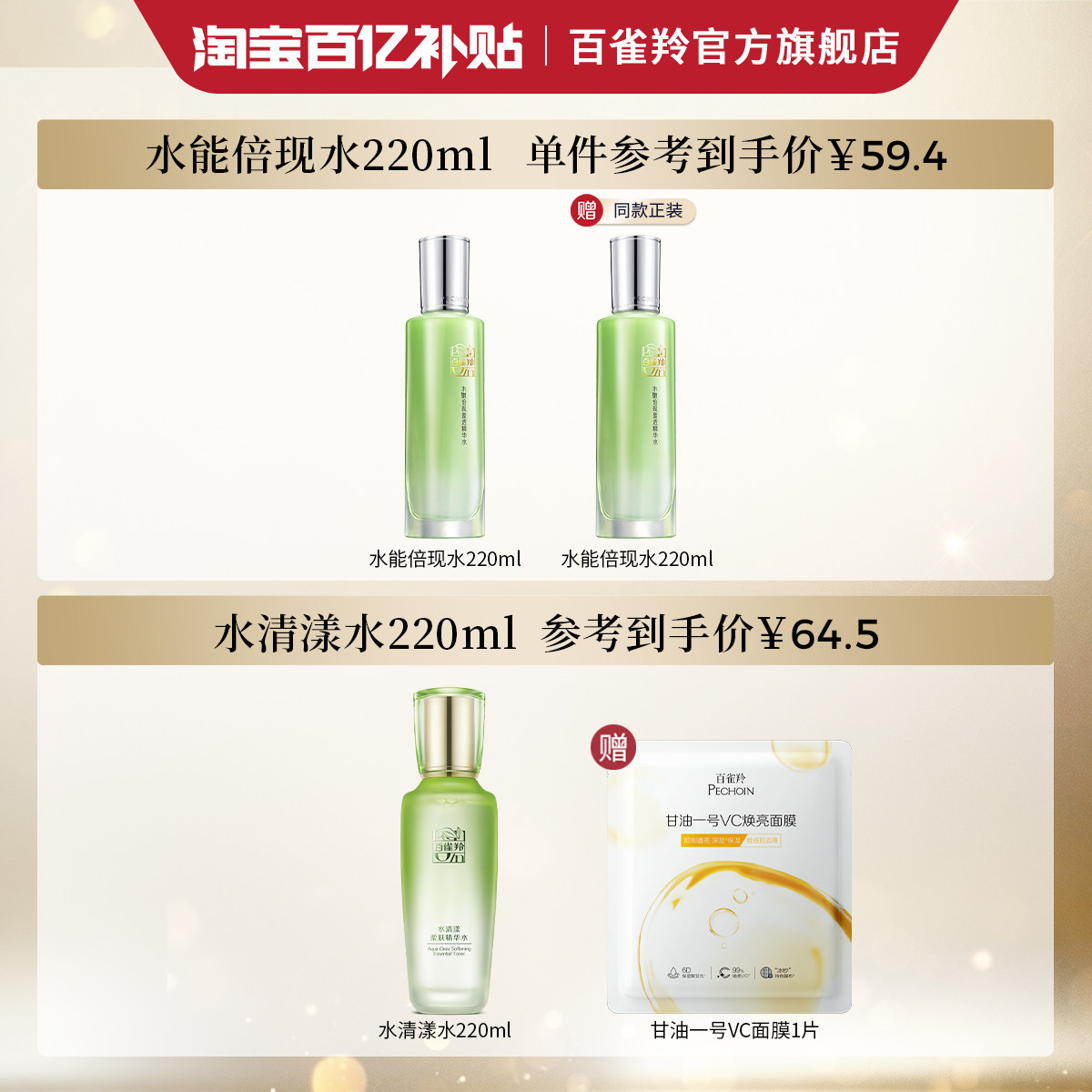 天猫百雀羚水嫩倍现清润美肤水补水保湿爽肤水旗舰店护肤品化妆品