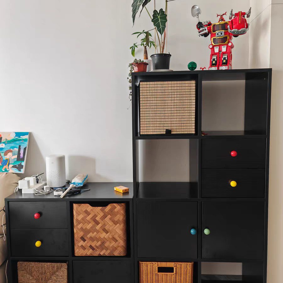 这款黑色格子柜实木儿童收纳书柜,集实用与美观于一体,专为儿童房或客厅设计。采用环保实木材质,结构稳固,安全耐用,表面经精细打磨与环保漆处理,光滑无毛刺,呵护孩子健康。经典黑色格子造型,简约现代,既能作为靠墙储物柜、置物柜,也可兼作矮电视柜或装饰柜,灵活适配多种家居风格。开放式与封闭式收纳结合,轻松收纳书籍、玩具、文具等物品,培养孩子整理习惯。占地小巧,靠墙摆放节省空间,既是功能强大的收纳助手,也是提升家居格调的精致点缀。