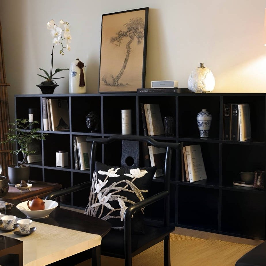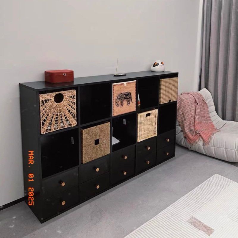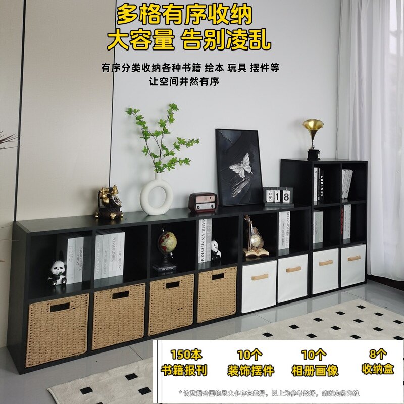 淘宝黑色格子柜实木儿童收纳书柜客厅矮电视柜装饰柜靠墙储物柜置物柜
