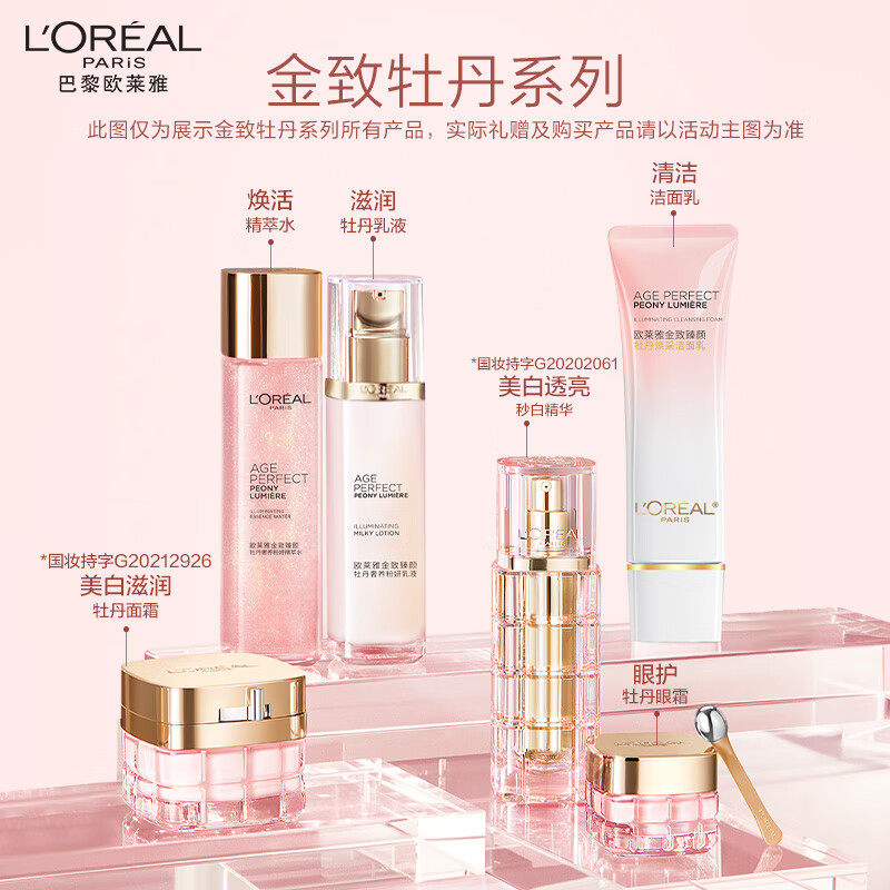 天猫【自营】欧莱雅牡丹粉妍精萃水乳液洁面滋润补水保湿紧致修护套装