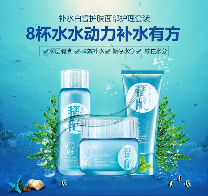 淘宝雅丽洁八8杯水润肌水动力护肤品保湿洁面柔肤液乳液 补水霜女套装
