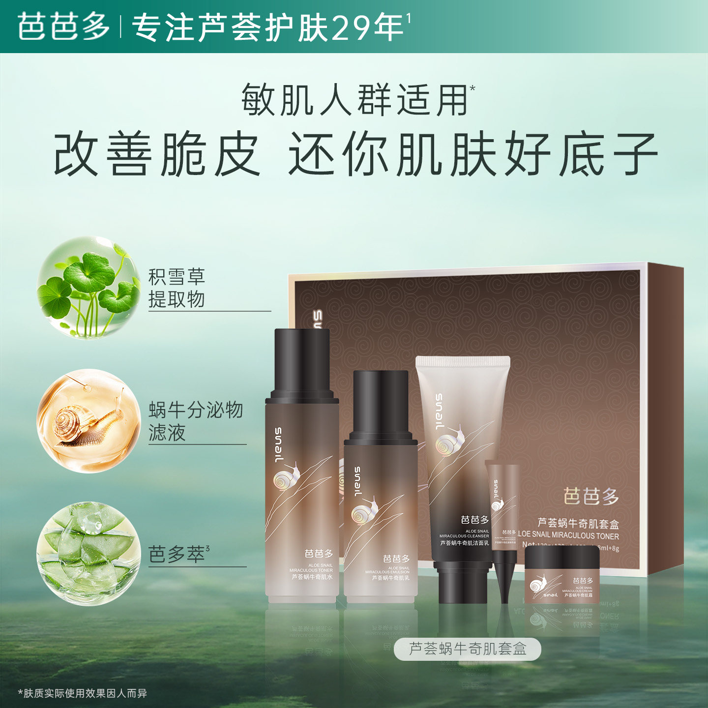 天猫芭芭多芦荟蜗牛奇肌套盒洁面水乳液精华液面霜保湿正品官方旗舰店