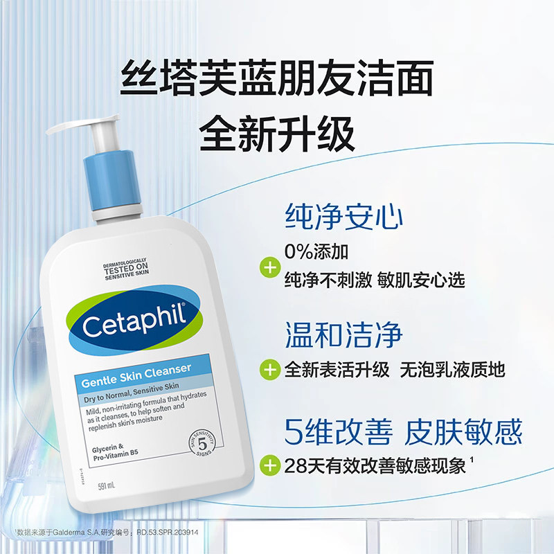 天猫丝塔芙Cetaphil温和蓝朋友洁面乳液女男士无泡洗面奶敏感肌不假滑