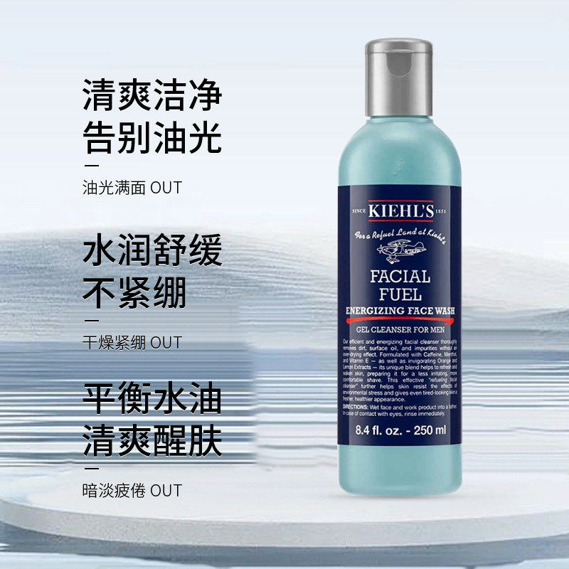 天猫Kiehl's科颜氏男士洁面啫喱爽肤水乳液250ml 控油补水保湿洗面奶