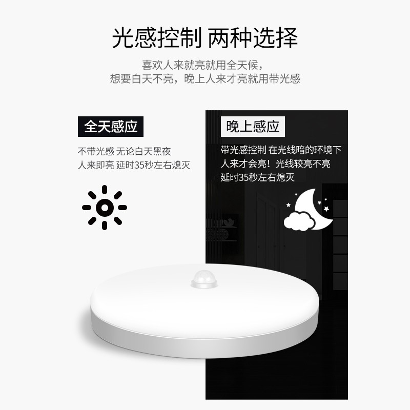 淘宝led红外人体雷达声光控感应智能吸顶灯楼梯过道入户车库走廊家用