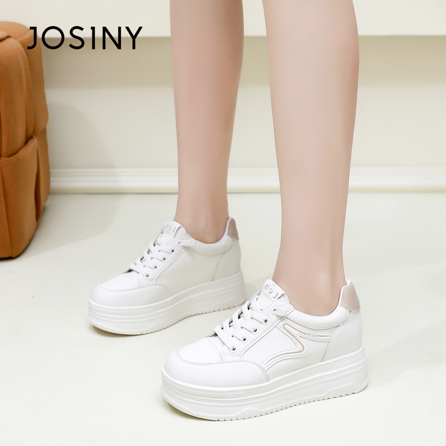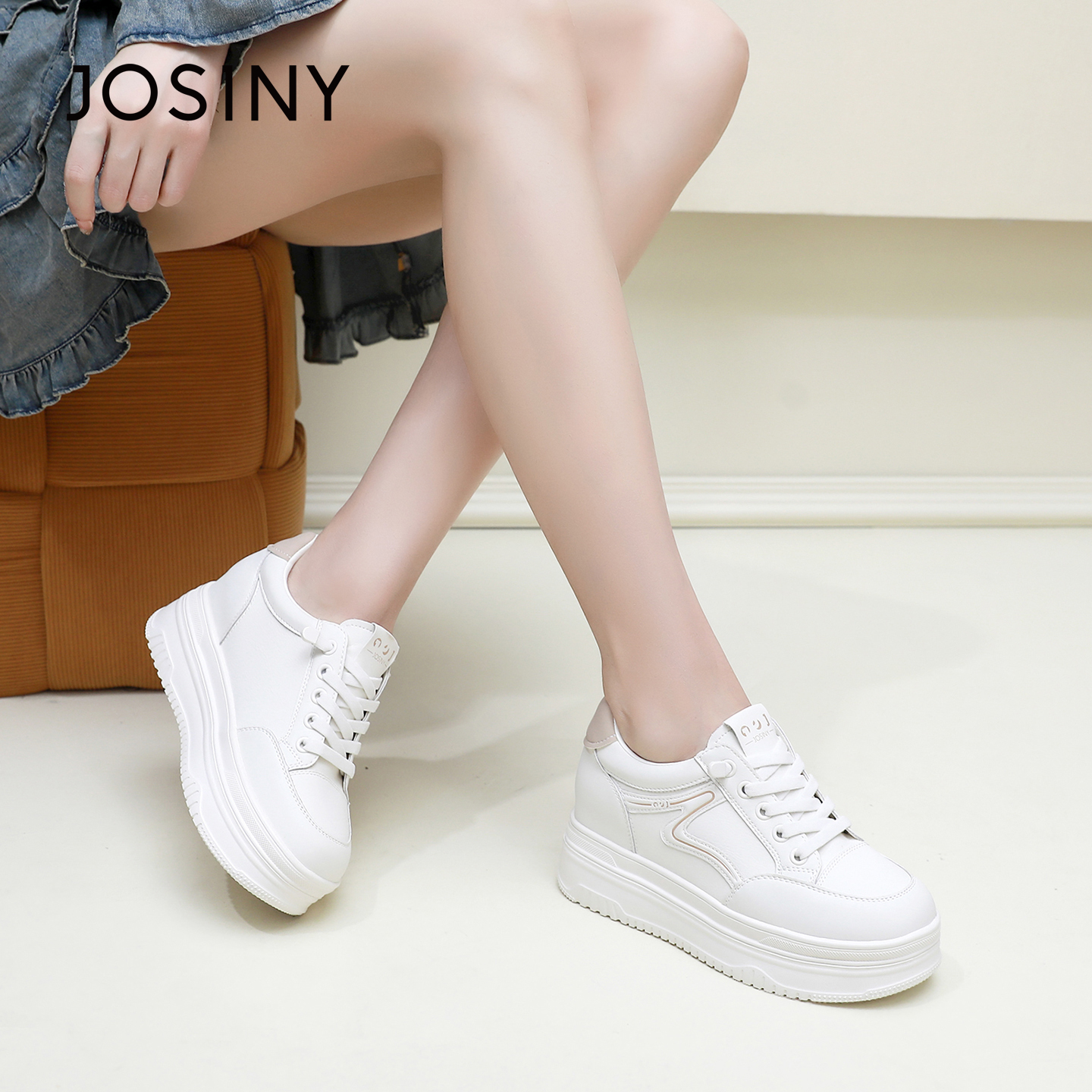 Rosa Bianca厚底小白鞋女2025秋新款真皮百搭运动休闲鞋增高板鞋
