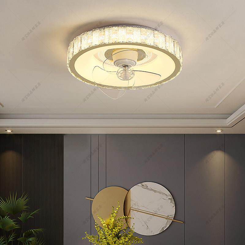 淘宝2025新款轻奢水晶吊扇灯一体卧室书房全光谱护眼吸顶灯摇头吊扇灯