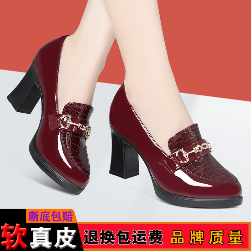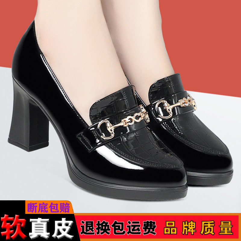 淘宝高跟乐福鞋秋季漆皮深口皮鞋旗袍走秀鞋职业工作鞋防水台粗跟单鞋