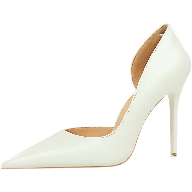 这款新款大码41-43职业气质性感白色高跟鞋,专为追求优雅与自信的女性设计。采用优质软皮材质,触感细腻,穿着舒适,贴合脚型。经典浅口尖头设计,拉长腿部线条,展现修长身姿;侧空细节增添一抹性感与时尚感,兼顾职场干练与女性魅力。7-8厘米的细高跟,提升整体气质,行走稳健不失风范。纯白色调百搭易穿,轻松搭配西装、裙装或裤装,适用于通勤、会议、约会等多种场合。大码设计贴心实用,满足更多女性需求,让每一位女性都能在高跟鞋中走出从容与美丽。