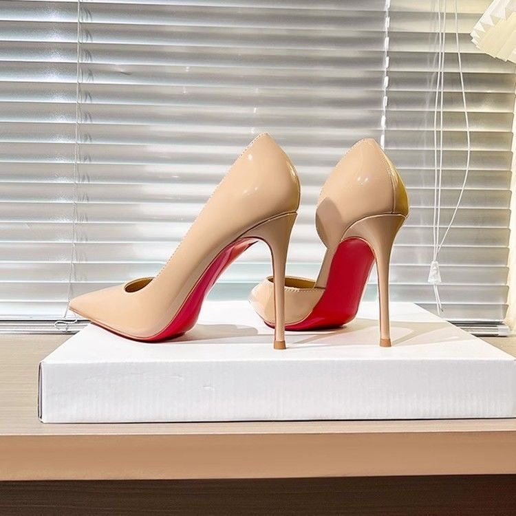 淘宝2025新款尖头细跟侧空黑色性感红底高跟鞋气质名媛风浅口百搭单鞋